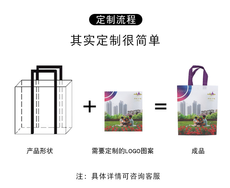 环保无纺布袋(俗称不织布袋)是一种绿色产品,坚韧耐用、造型美观,透气性好,可重复使用、可洗涤,可丝印广告、使用期长,适宜任何公司、任何行业作为广告宣传、赠品之用。