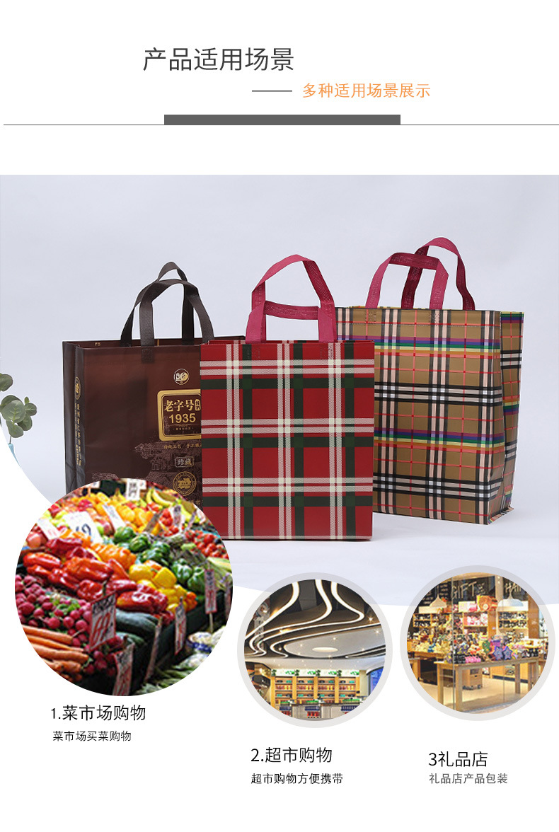 该系列制品颜色丰厚、鲜艳、时髦,款式丰厚,环保用处广泛,美观大方,图画和款式改变多异,且质轻环保,携带方便,价格低廉,使用寿命比纸袋长,无纺布袋可循环使用,被国际公认为保护地球生态的环境产品。